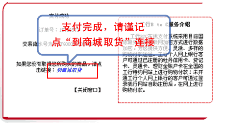 6、支付完成,请点“到商城取货”连接,请谨记进行此操作,否则可能掉单!!